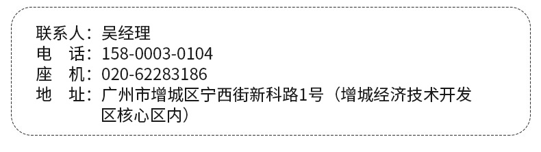 地址:广州市增城区宁西街新科路1号(增城经济技术开发区核心区内) 邮编:511356